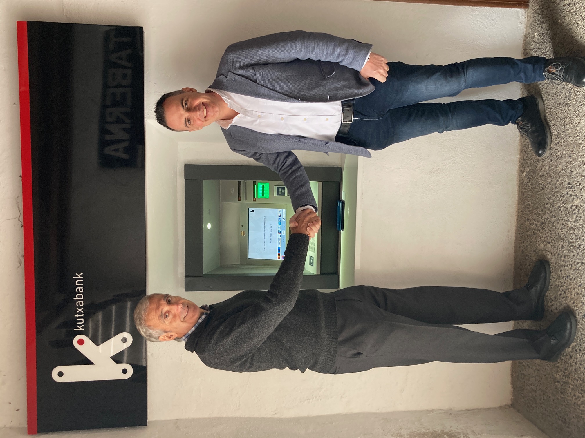Inaki Irazabalbeitiak, Alkizako alkateak, eta Xeber Irastortzak, Kutxabank-eko ordezkariak, kutxazain berriaren funtzionamendua aztertzen izan dira.