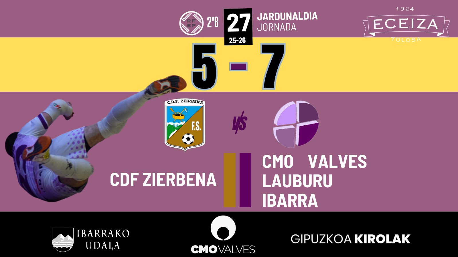 Hala ere, CMO Valves Lauburu Ibarrak jo zuen lehen kolpea, Víctorren golari esker markagailuan aurrea hartuta. Etxekoen erreakzioa berehala iritsi zen: lehenik berdinketa lortu zuten, area inguruan izandako eta eztabaida handia izan zuen bost segundoko falta baten ondoren; jarraian Fernandok buelta eman zion partidari. Atsedenaldia baino lehen, ordea, Chukyk berriro berdindu zuen lehia, neurketa guztiz irekita utziz.