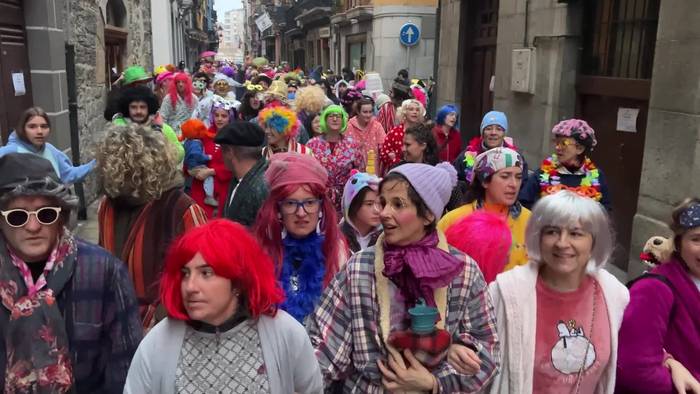 Txarangen kalejira ibili da Nafarroa etorbidetik zehar; inauterizaleak Zezen-plazatik Alde Zaharrera bitartean dantzan jarriz.