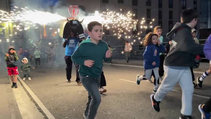 Suzko zezenak ibili dira Plaza zaharretik Piñata igande iluntzean.