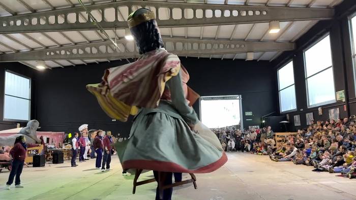 Tolosako erraldoi eta buruhandien konpartsaren kalejirak eman dio hasiera pregoi asteburuko larunbatari.