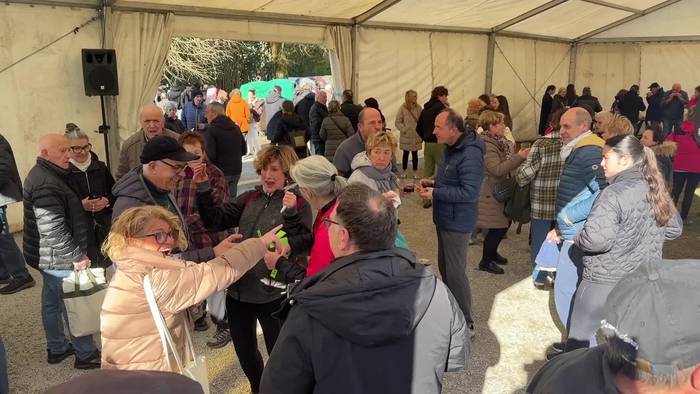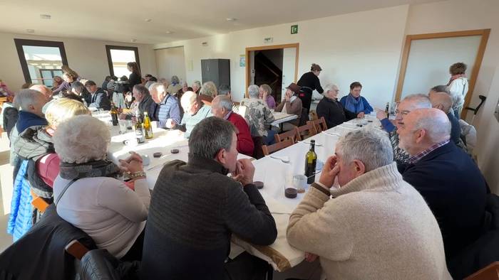 Eltxoak meza entzun ondoren, kalejiran joan dira kultur etxera, atarian fandangoa eta arin arina dantzatuta, festak etenik izan ez dezan, salda beroak indartu ditu.