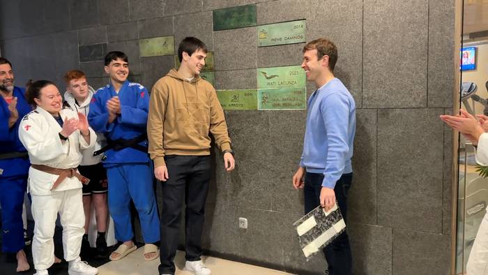 2025eko Kirol Galan sari nagusia jaso ostean, judoken izenekin plaka jartzeko ekitaldia egin dute Usabal kiroldegian.