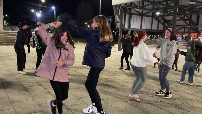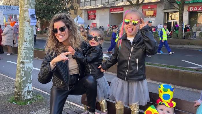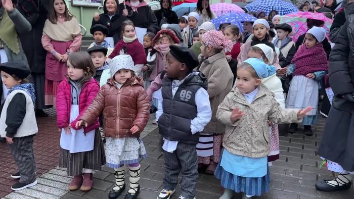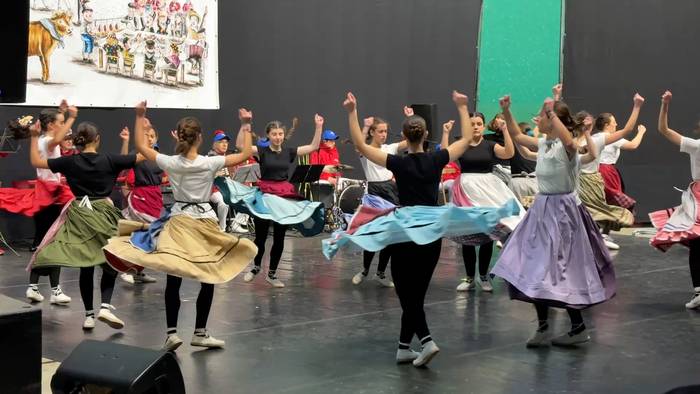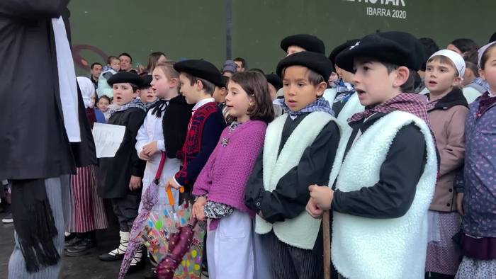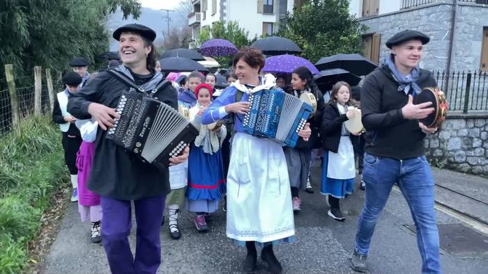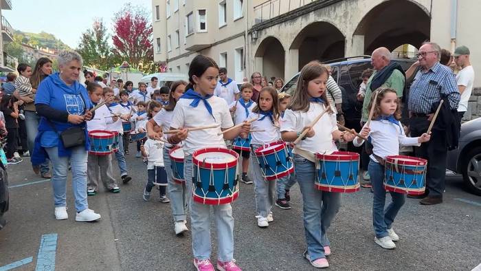 Bi herrietako haurrak atera dira kaleak musikaz girotzera.
