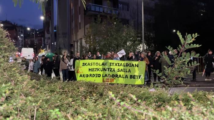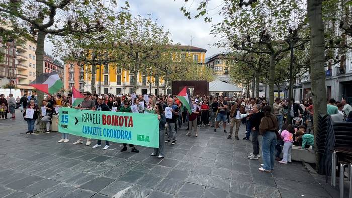 ELA sindikatuak eguerdian egin du elkarretaratzea. Bertan, Gazako genozidioa salatu asmoz dozenaka lagun elkartu dira.