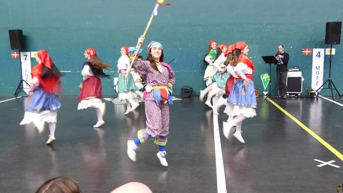 Eguraldairen ondorioz frontoiean dantzatu behar izan dute eskualdeko dantza taldeek.