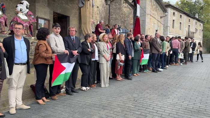 Tolosaldeako GKS-k elkarretaratzea egin du udaletxe parean; Palestinako sarraskia salatu eta Israelen desegitea aldarrikatzeko.