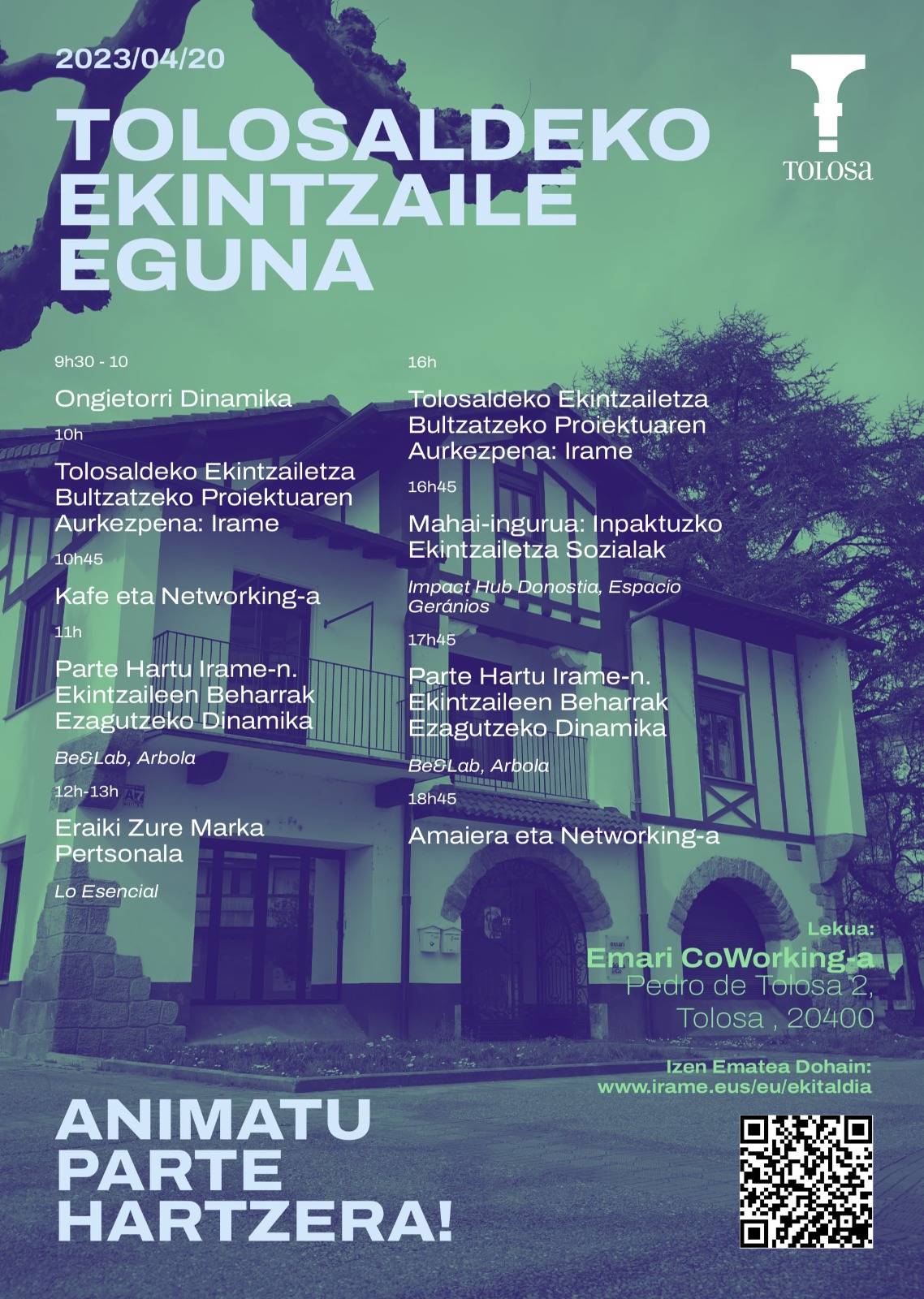 Datorren ostegunean, apirilak 20, ekintzailetza ardatz izango duen ekitaldia antolatu da EMARIn Tolosako Udalak eta Arbola Consulting Pertsonak, Be&Lab eta Benio elkarteek bultzatuta.